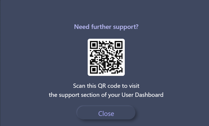 - A QR code for the User Dashboard is displayed if a print is unsuccessful. Users can then access troubleshooting resources or open a support ticket.